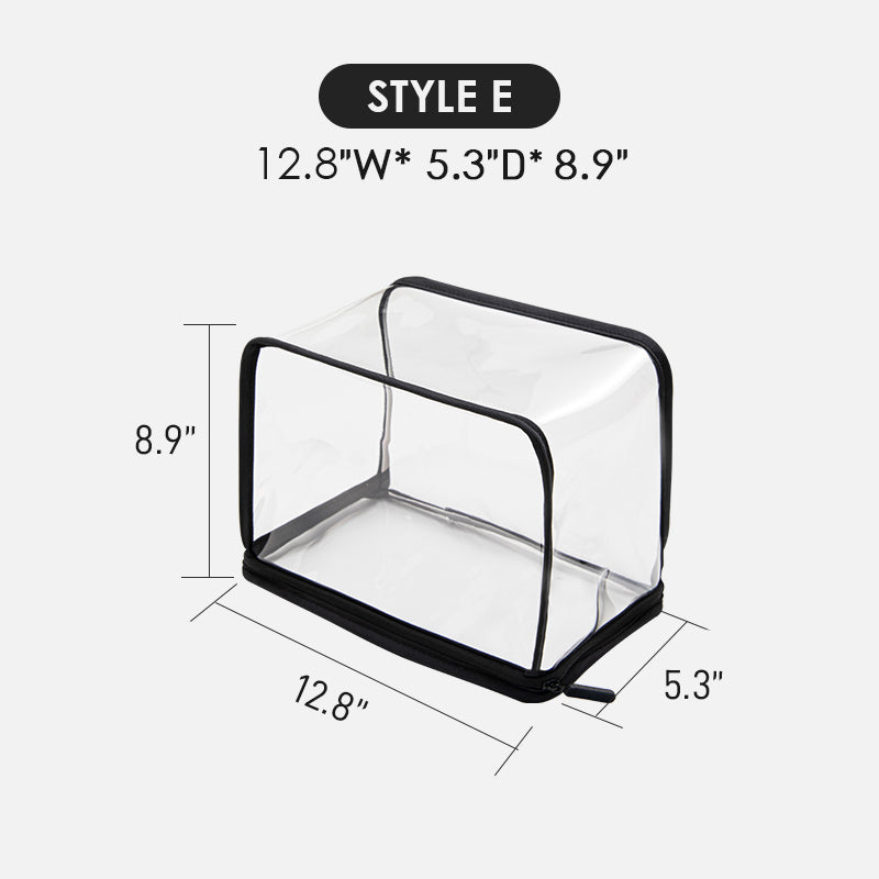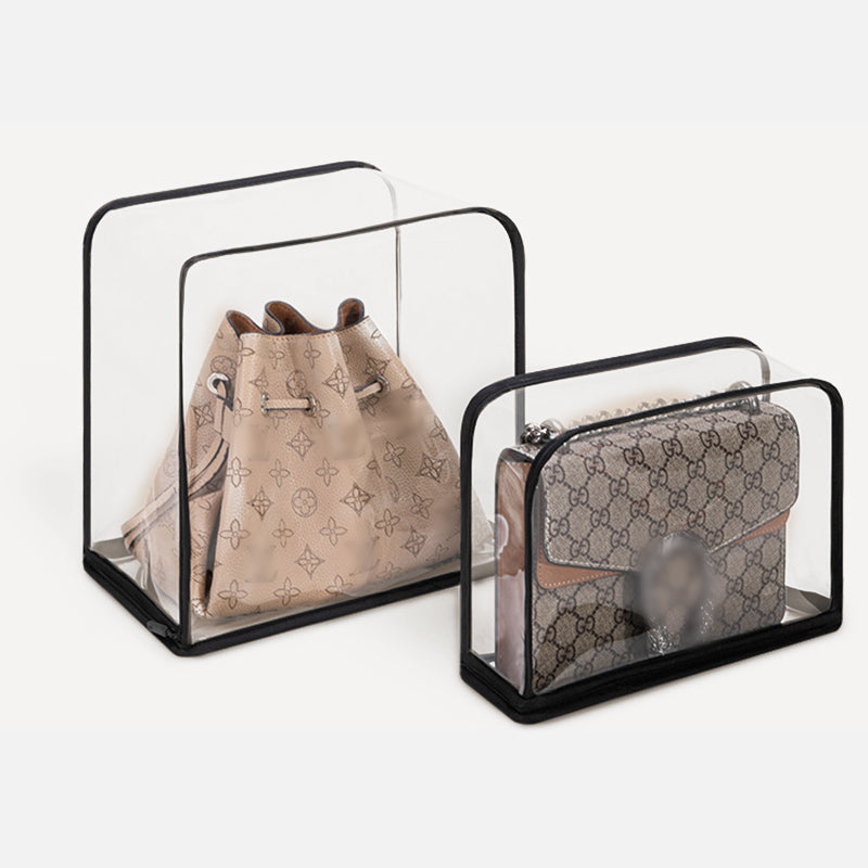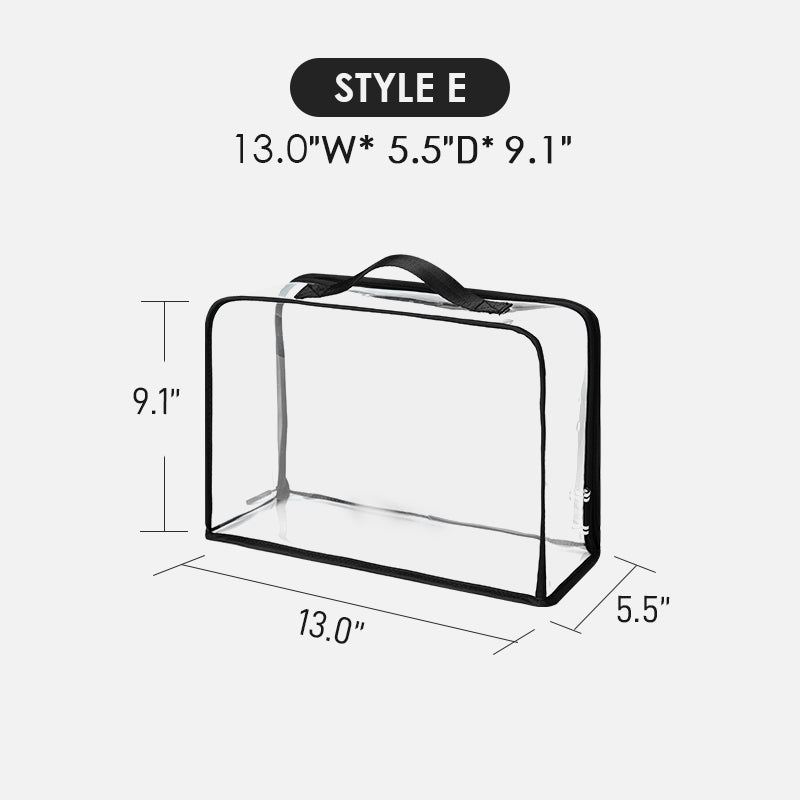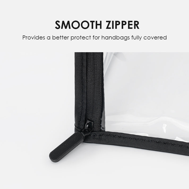Fashionable and beautiful transparent design with zipper makes your bags easy to take and visible in all directions. The bottom opening design prevents your bags from being scratched when put in.