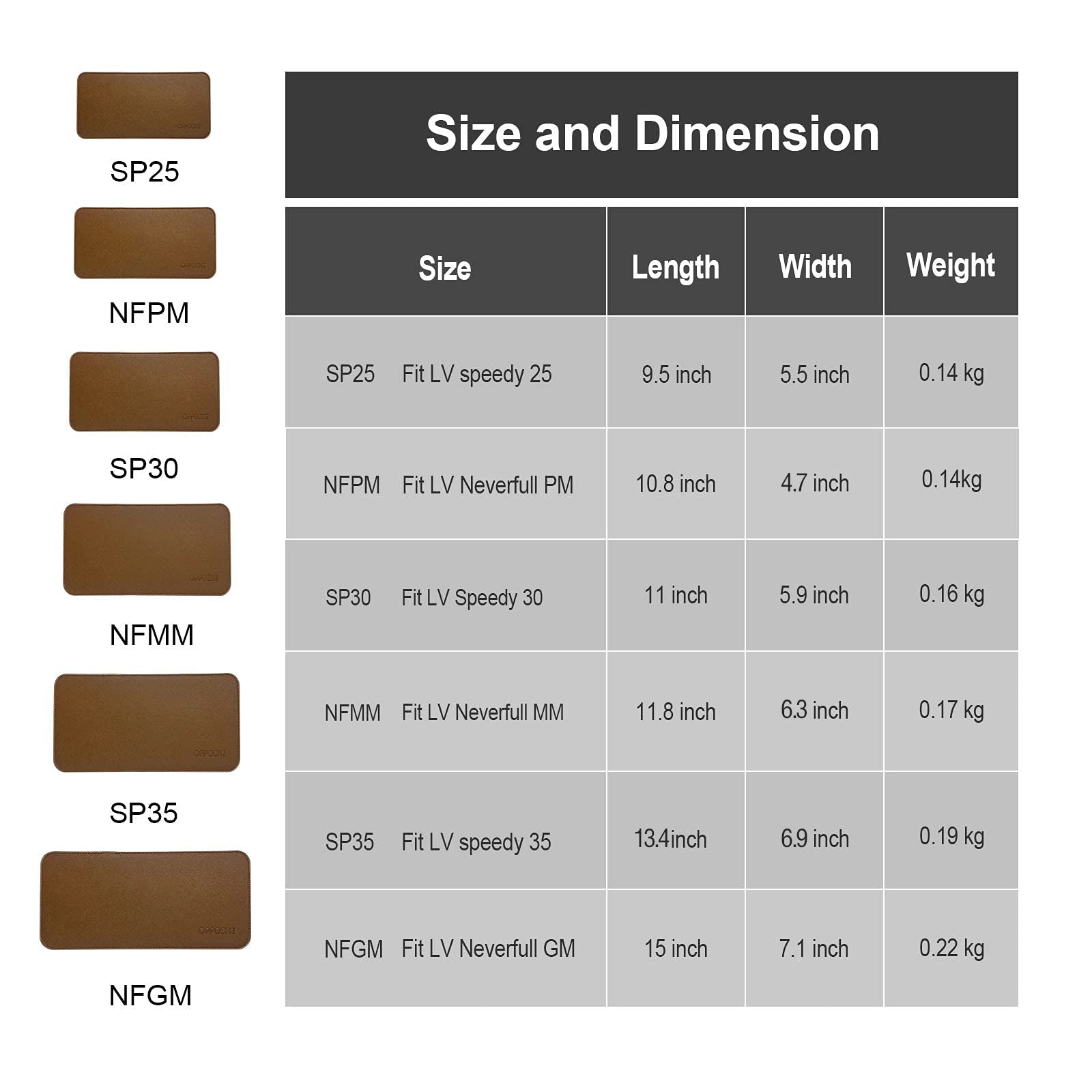 Note: Please kindly measure the interior width, depth, and height of your handbag, and refer to our size chart before placing the order.