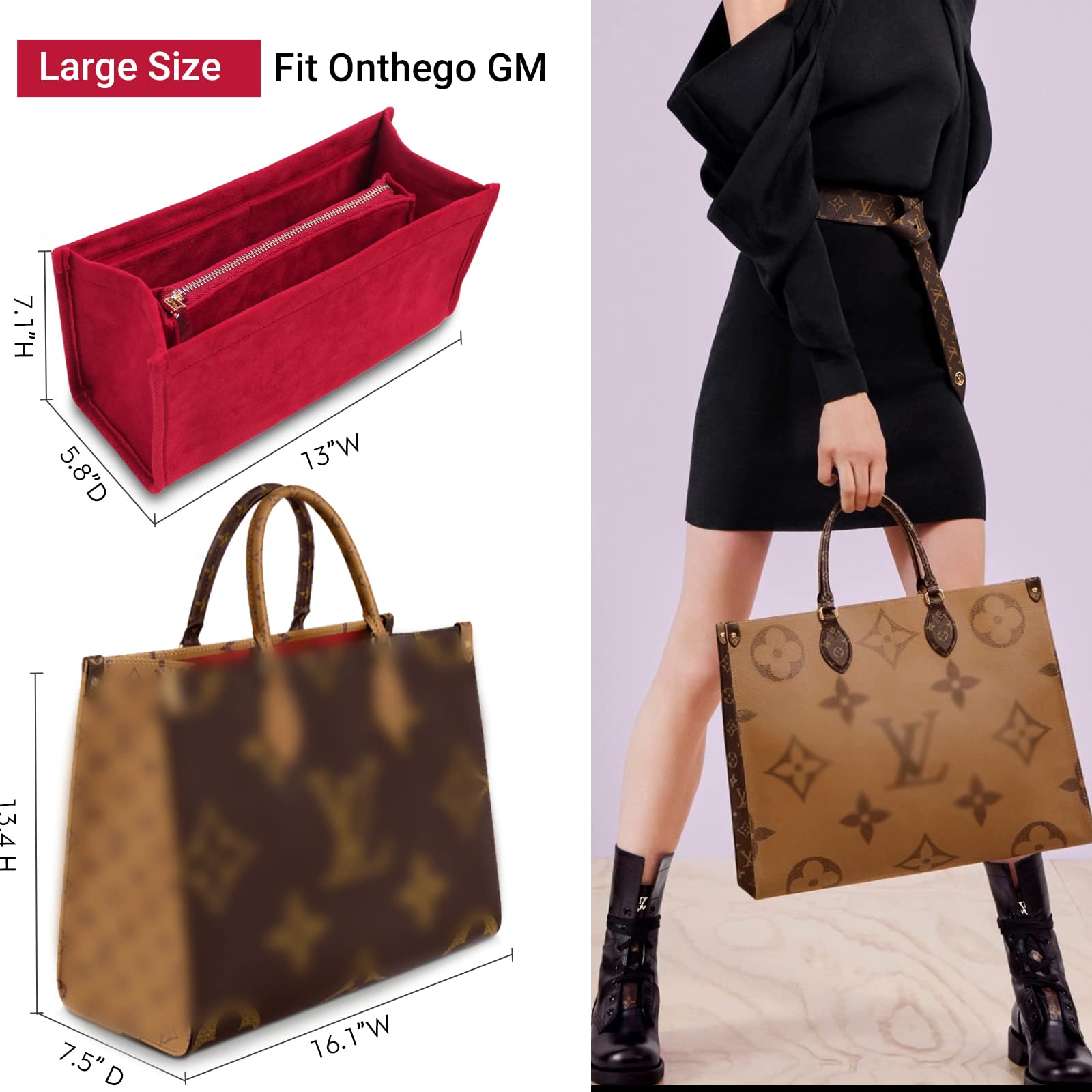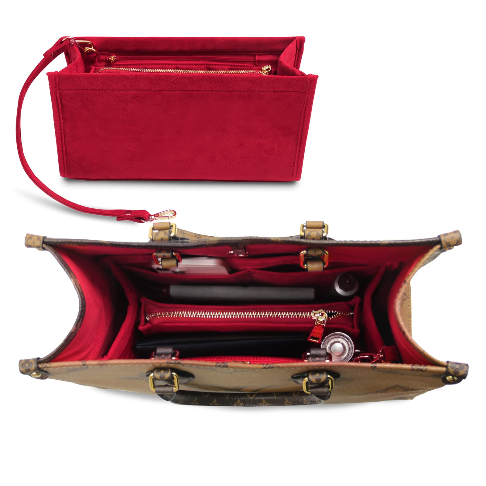 For Onthego GM/Birkin 35/Book Tote Small and More | Suede Velvet Bag Organizer Insert with Key Chain