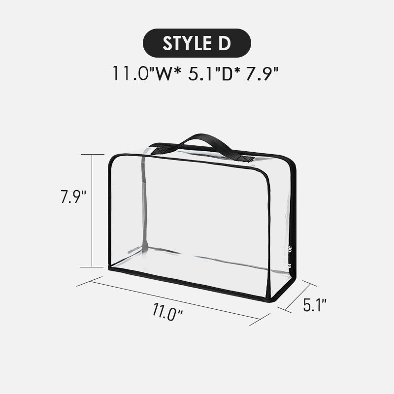 Fashionable and beautiful transparent design with zipper makes your bags easy to take and visible in all directions. The bottom opening design prevents your bags from being scratched when put in.