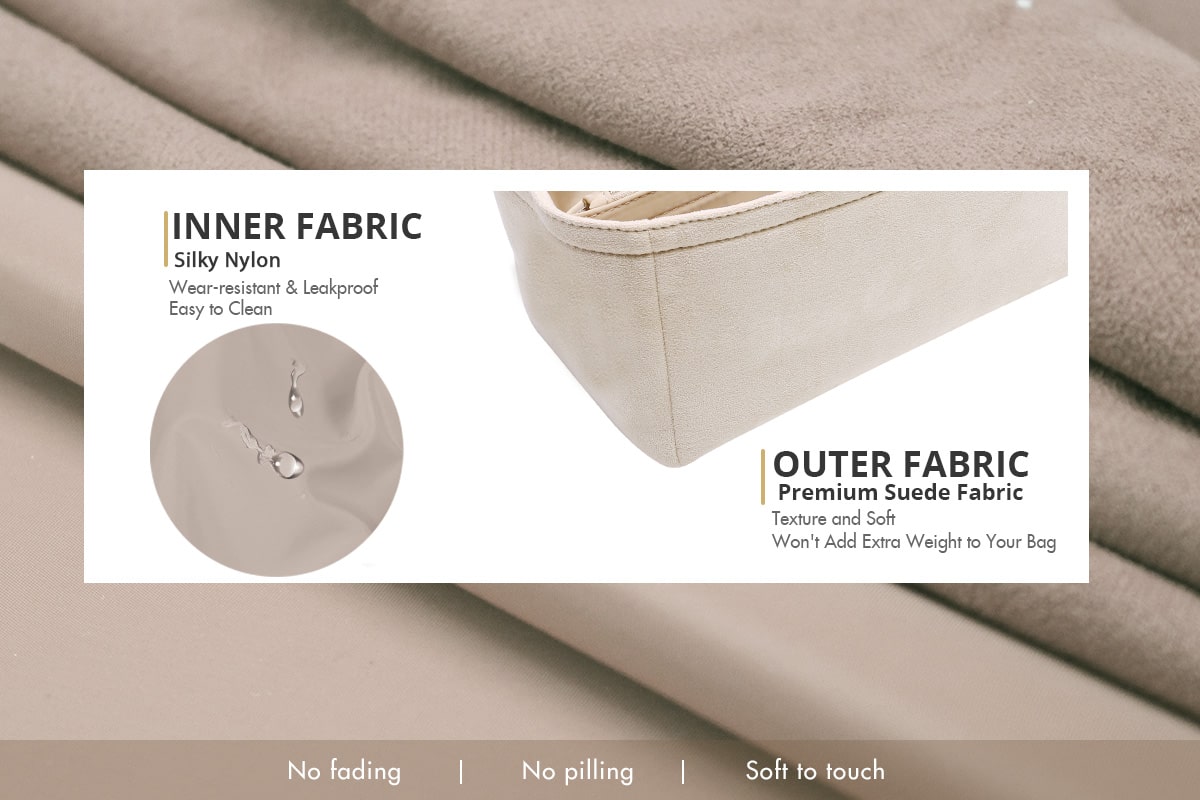 The outer layer of this purse insert is a new type of suede velvet microfiber fabric, which is soft to the touch, wear-resistant, and durable.