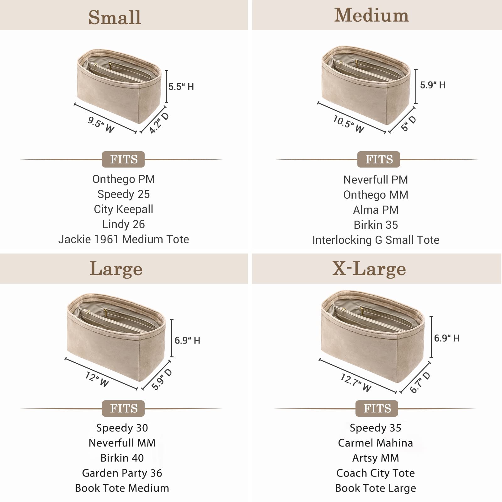 For Onthego PM/Speedy 25/Neverfull PM/Lindy 26 and More | Suede Velvet Handbag Organizer Insert
